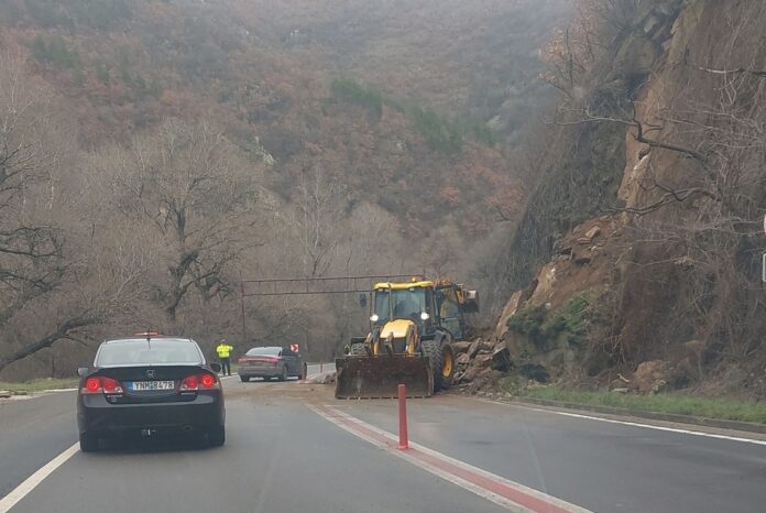 Движението по път I-1 Симитли – Кресна в района на Малкия тунел в Кресненското дефиле се осъществява двупосочно в една лента поради паднала скална маса на пътното платно.